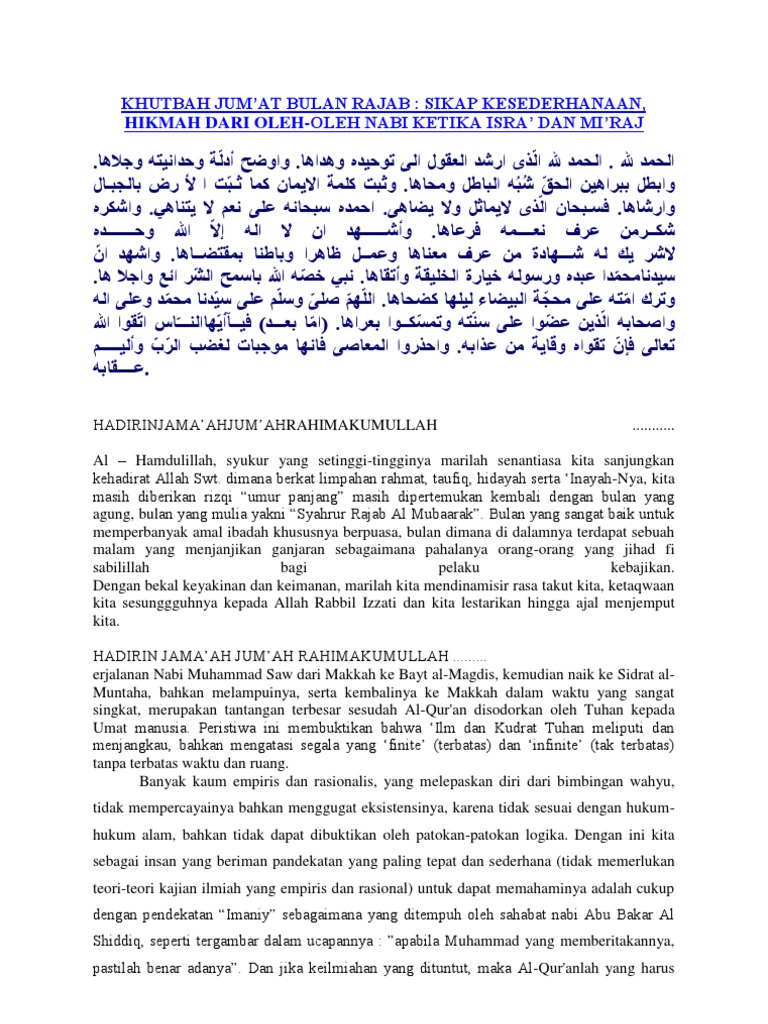 DOC) KHUTBAH JUM’AT: KEUTAMAAN BULAN RAJAB | SDN 03 GAMBUHAN - Academia.edu