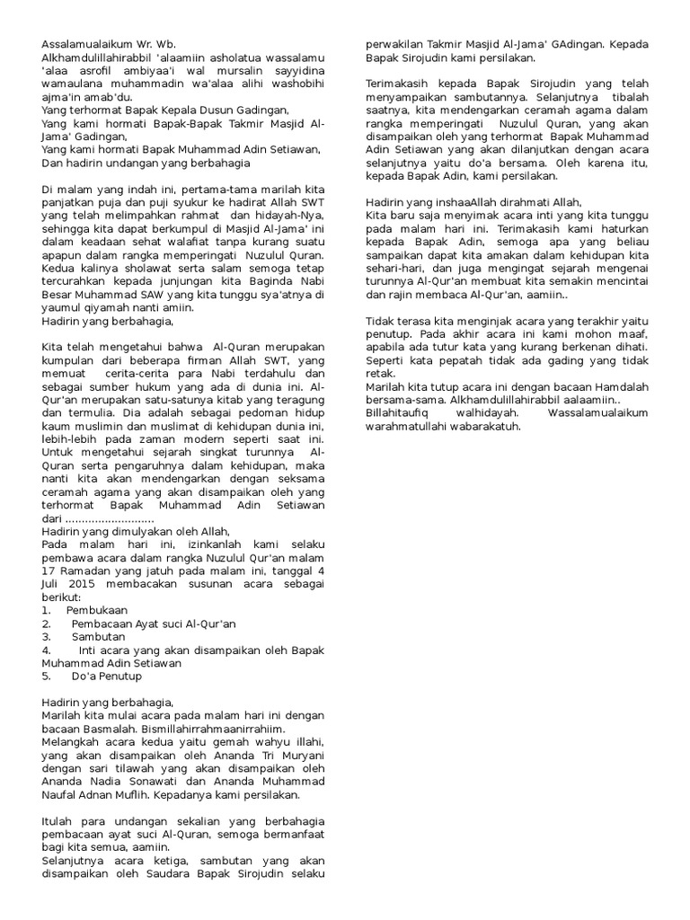 DOC) MC Nuzulul Qur | Rohman Ainulyakin - Academia.edu