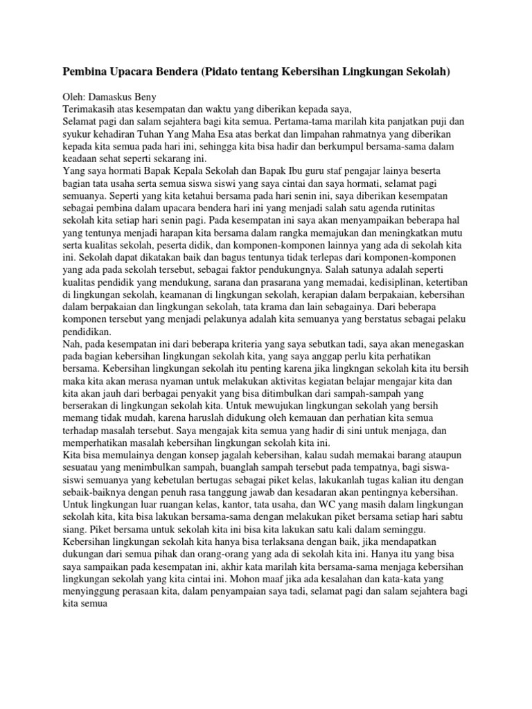 DOC) Pidato Kebersihan Lingkungan Sekolah | aditya hidayat …