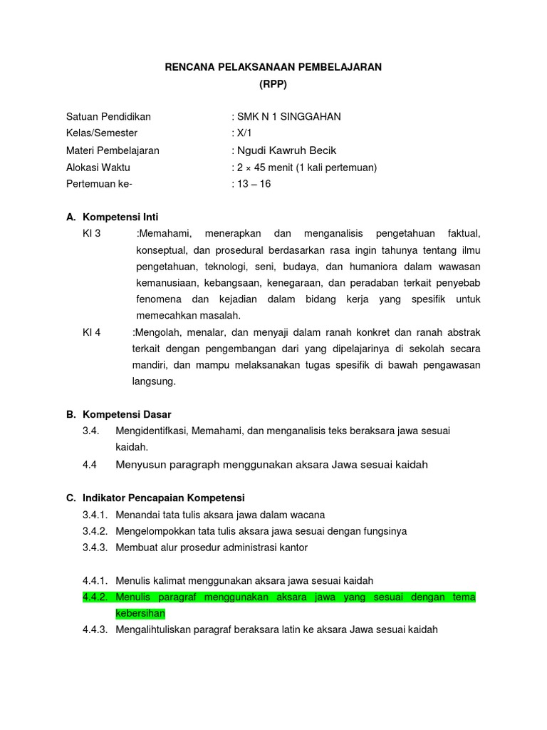 RPP Bahasa Jawa - X - KD 4 Adiwiyata