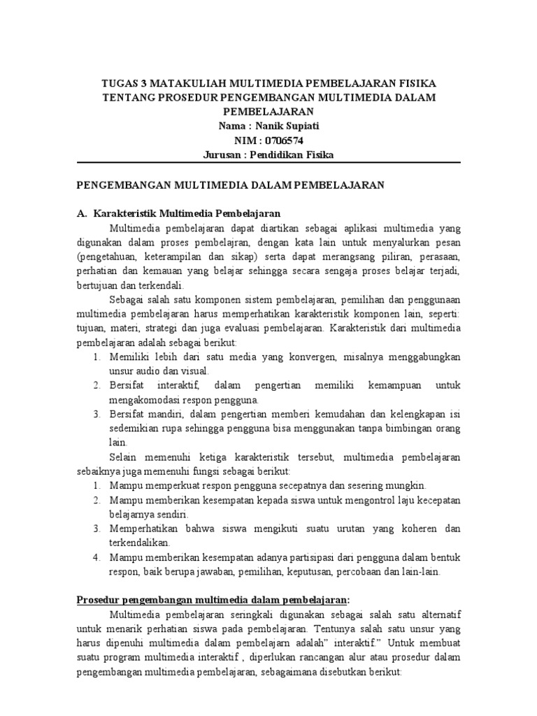 Nanik Supiati (0706574) Tugas 3 Multimedia (Prosedur an Multimedia Pembelajaran