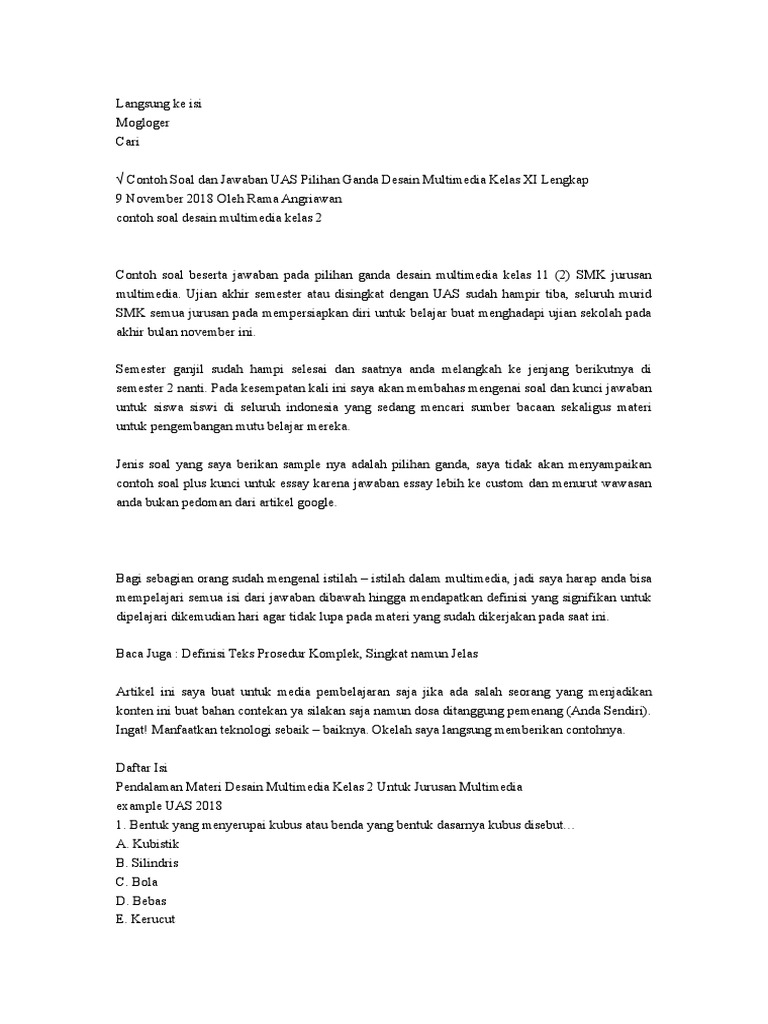 Contoh Soal Dan Jawaban UAS Pilihan Ganda Desain Multimedia Kelas XI Lengkap - ThelastSurvivors