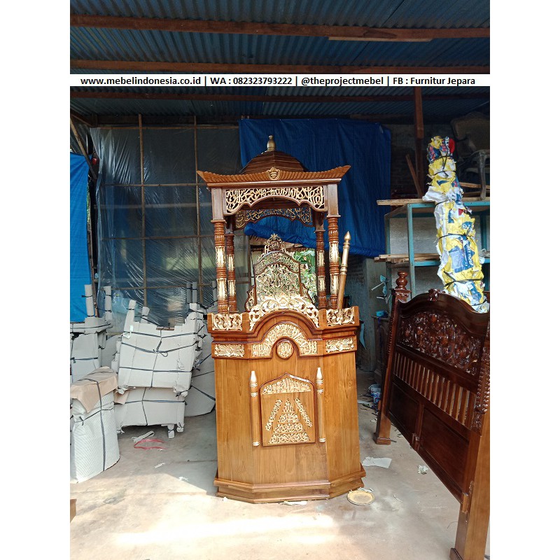 Mimbar Kereta Podium Tempat Ceramah Pidato Kayu Jati Ukir Natural Gold Kuba Masjid | Shopee Indonesia