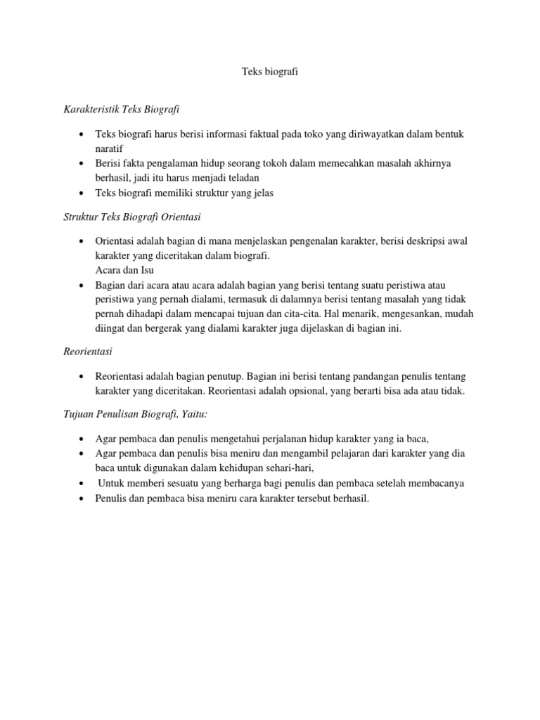 Ciri-Ciri Biografi