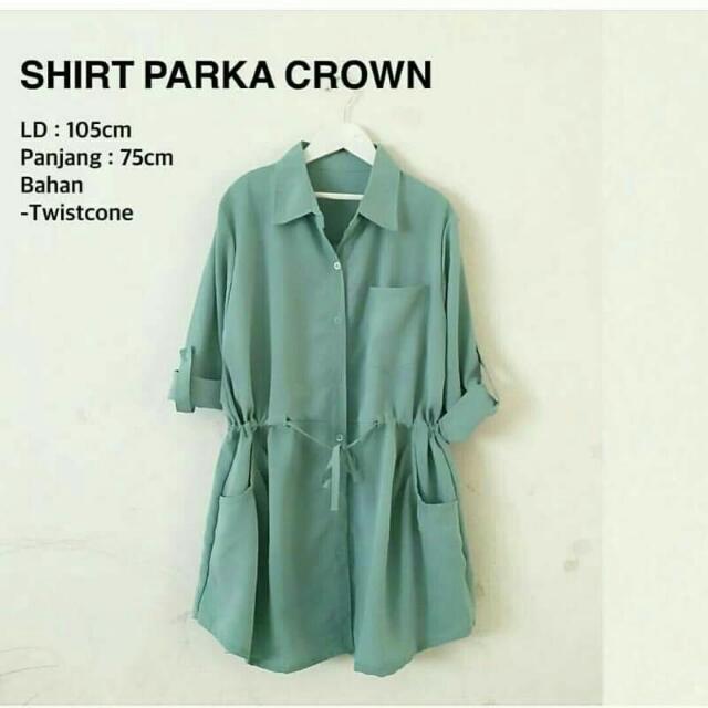 Shirt parka Ld: 105cm Panjang : 75cm Bahan : twistcone, Olshop Fashion, Olshop Wanita di Carousell