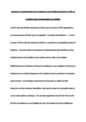 A-LEVEL FRENCH La Haine Paper 2 2018 Model Essay Le conflit et le traitement de ce thème | Teaching Resources