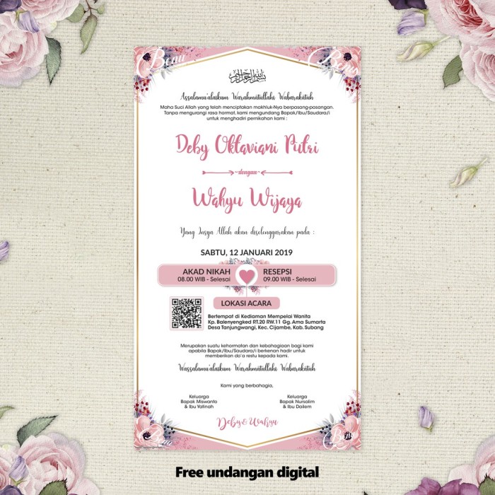 27+ Contoh Undangan Pernikahan Simple, Unik, Islami, Sederhana, lengkap
