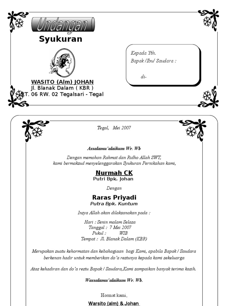 Contoh Undangan Kenduri Nikahan sederhana Word