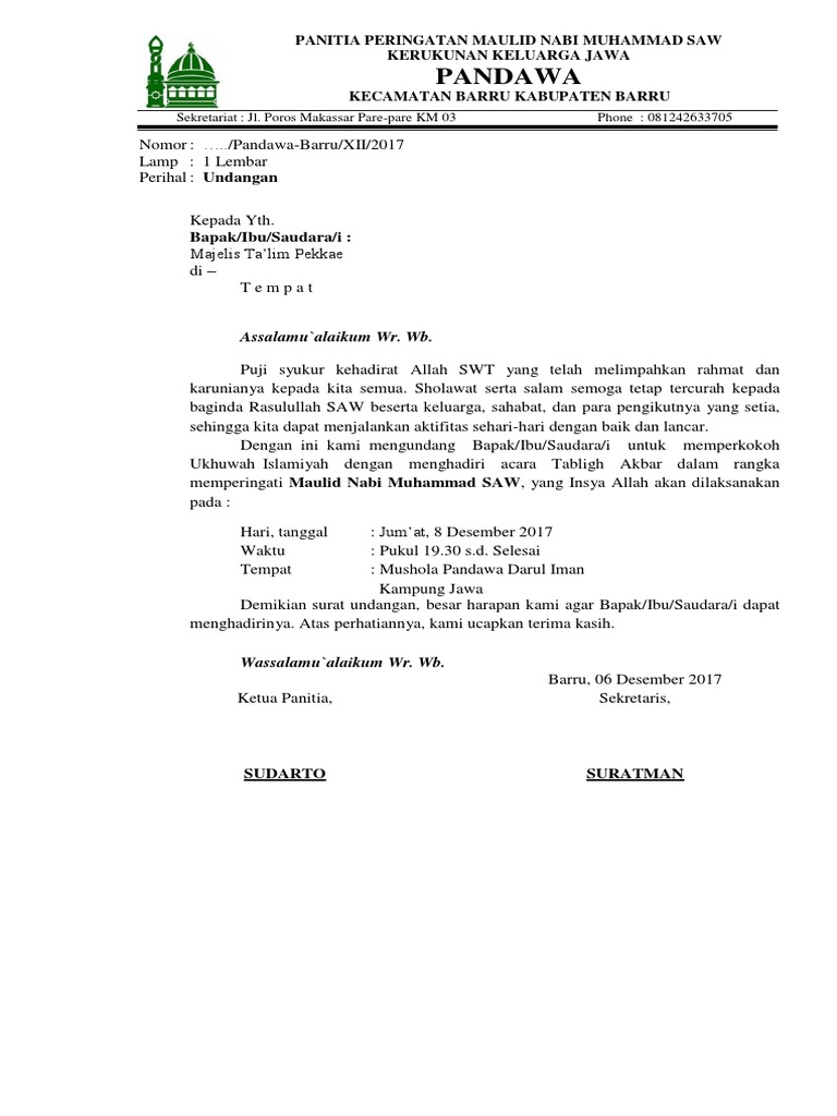 DOC) Surat Undangan Maulid Nabi Muhammad Saw | yulius gocar2017 - Academia.edu