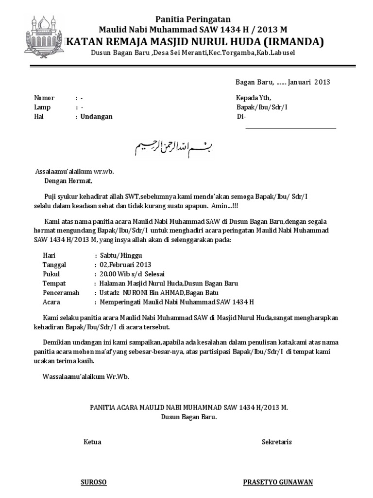 DOC) Surat Undangan Maulid Nabi Muhammad Saw | yulius gocar2017 - Academia.edu