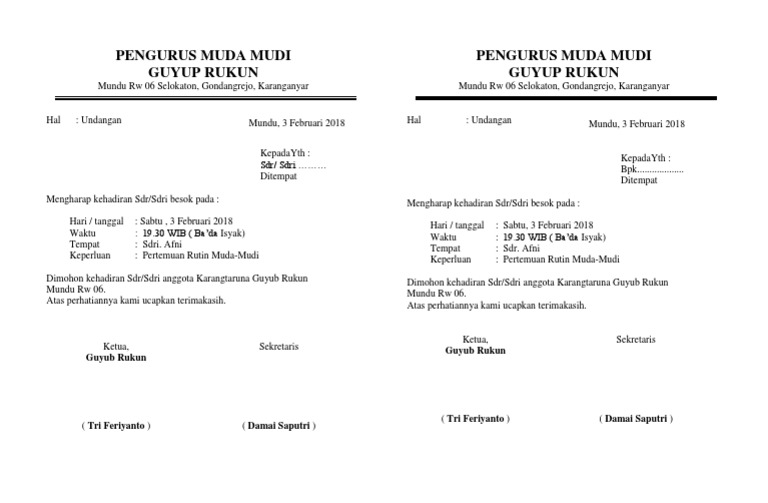 Contoh Surat Undangan Rapat Muda Mudi