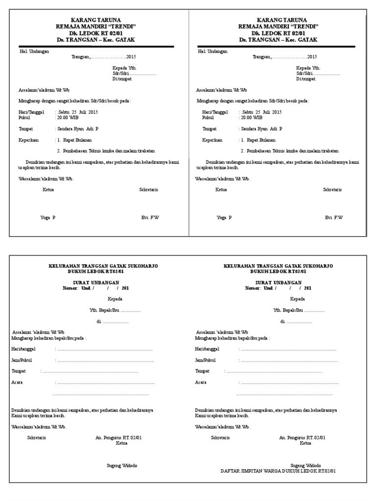 Contoh Surat Undangan Karang Taruna file Doc