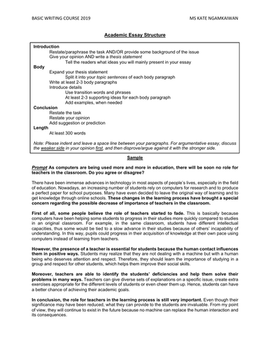 Academic Essay Structure and Exercises | Teaching Resources