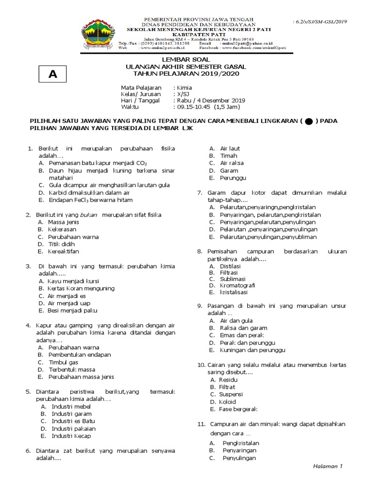 Soal perubahan fisika dan kimia kelas 7 kurikulum 2013 edisi revisi 2017 - Fisika dan Matematika