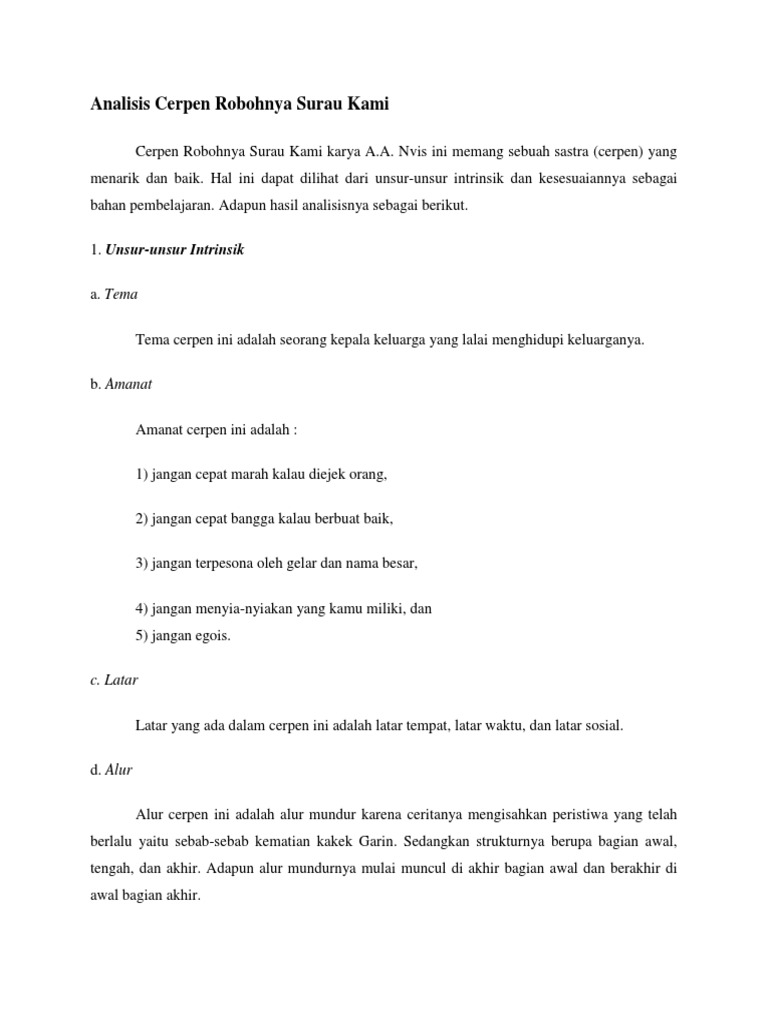DOC) Cerpen Robohnya Surau Kami karya AA Navis | Nara Aska - Academia.edu