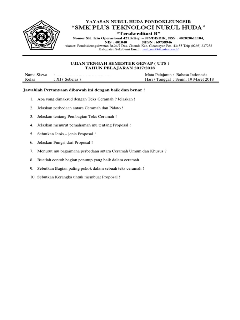 Soal Uts Genap b. Indonesia