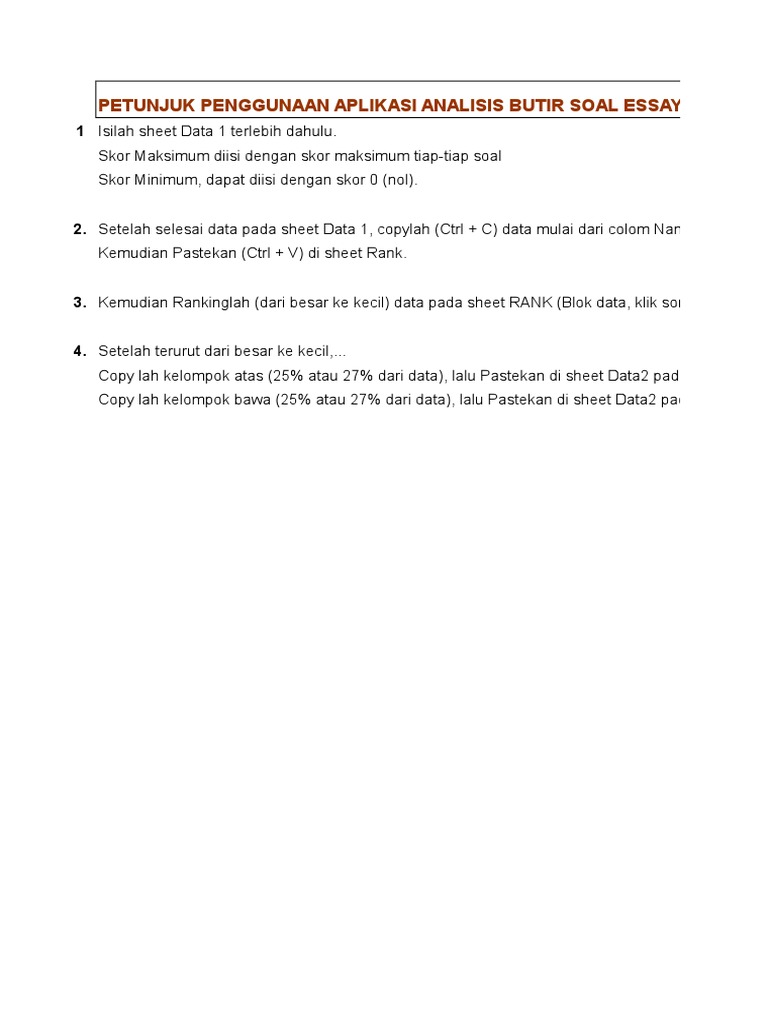 Aplikasi Analisis Butir Soal Essay dengan Microsoft Excel oleh Pak …