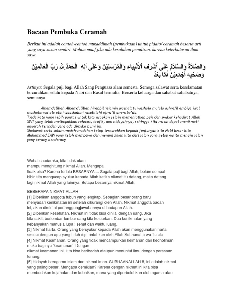 Contoh Mukadimah Pidato Ceramah Bahasa Arab Dan Terjemahannya - soal usbn listrik smk