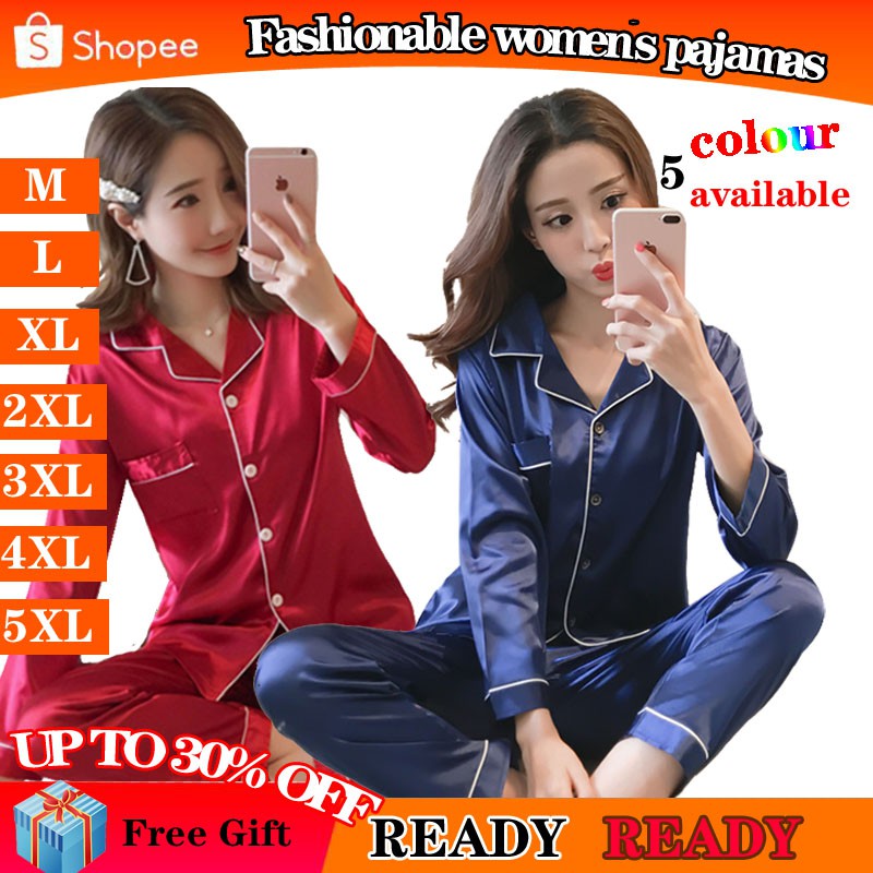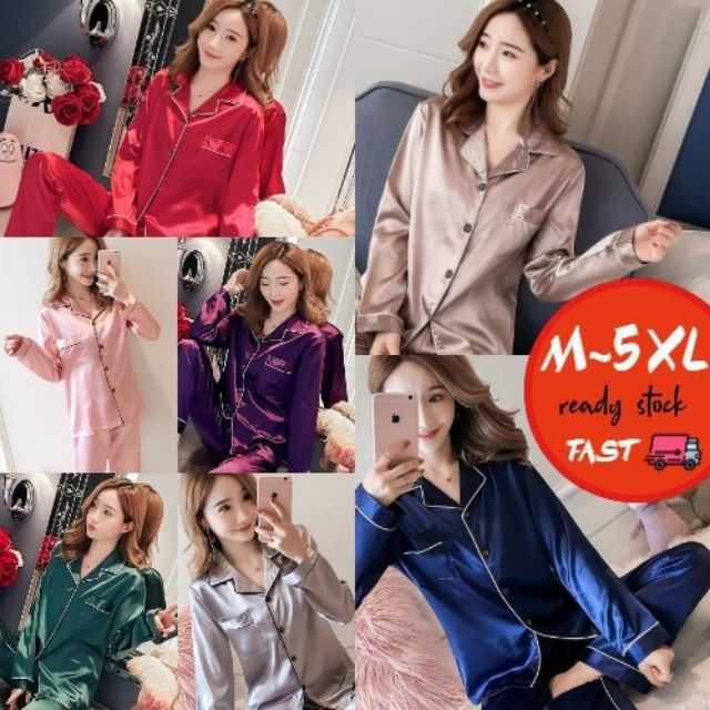 Ready Stock BAJU TIDUR KAIN SATIN 1 SET MURAH SELESA DAN BERGAYA KAIN SEJUK BAJU TIDUR LENGAN PANJANG | Shopee Malaysia