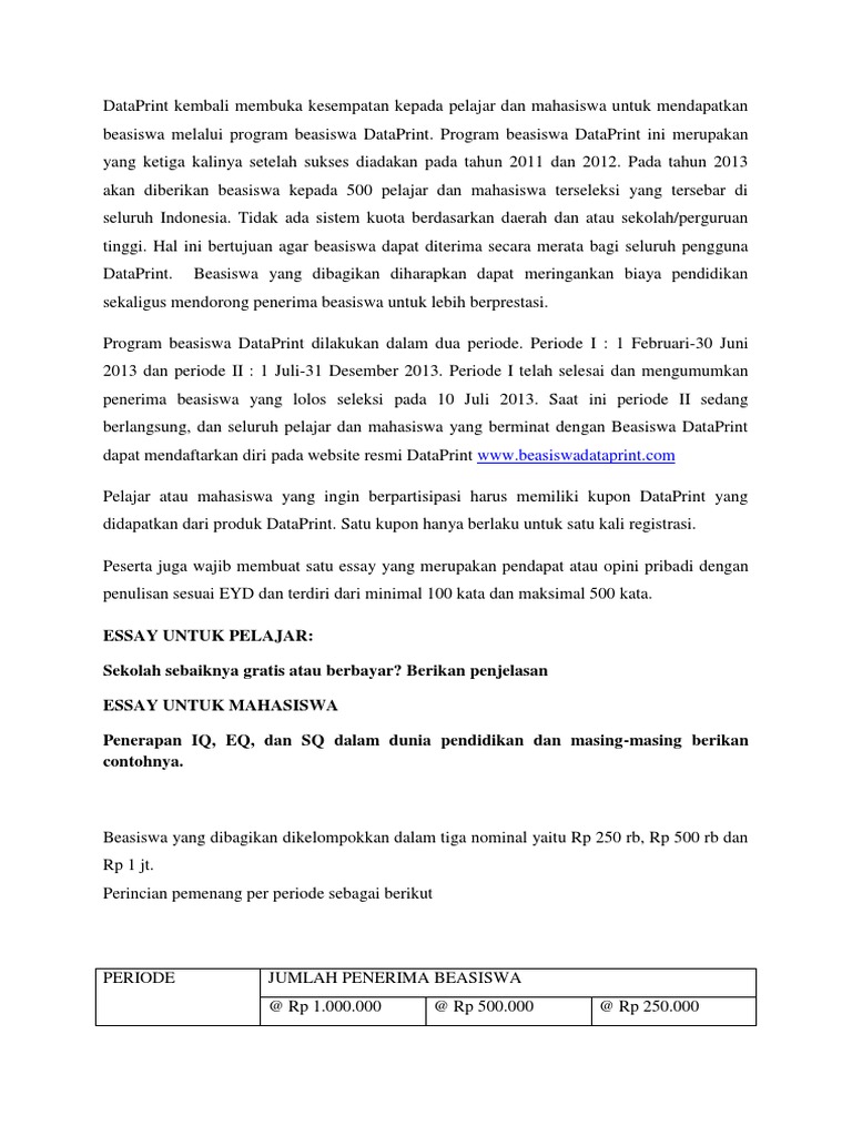 Essay pemenang beasiswa dataprint : Essay Mahasiswa | Share Ilmu, Pengetahuan, wawasan, Implementasikan…Jos!!!!