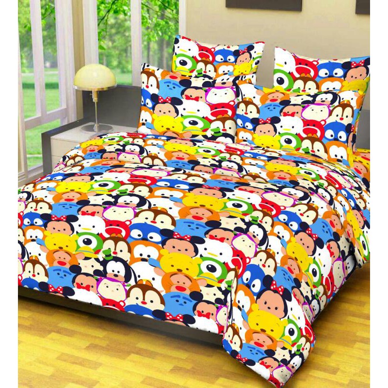 KENDRA Character Bed Sheet 180x200 KING 2 Pillow Case Bolster Set DIsney Tsum Tsum Motif Cheap FRIAmart | Shopee Singapore