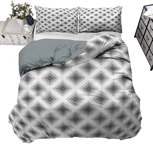Amazon.com: Quilt Cover Grey, Squares Optic Illusion Effect Boys Bedding Sets Protecting Your Duvet Queen - 90 x 90 Inch: Home & Kitchen