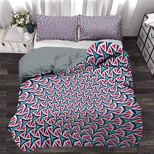 Amazon.com: UNOSEKS LANZON Duvet Cover Geometric Shapes in Abstract Design Retro Optical Illusion Hipster Spring Duvet Cover Breathable and Comfortable Turquoise Indigo Dark Coral Twin - 70 x 90 Inch: Home & Kitchen