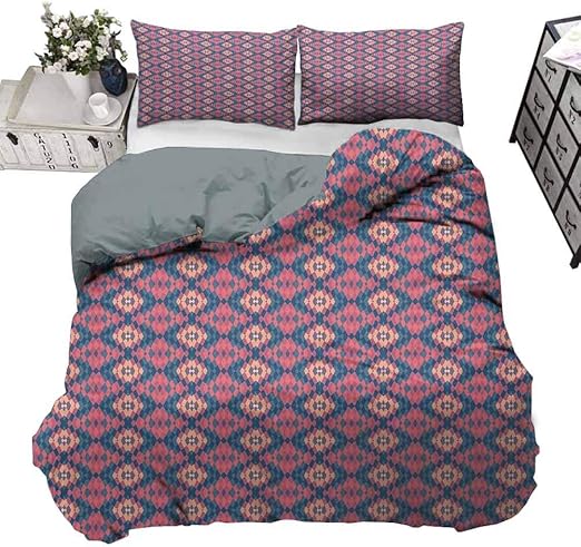 Amazon.com: UNOSEKS LANZON Duvet Cover Retro Style Tile Optical Illusion Effect Abstract Graphic Design Summer Bedding So Soft and Comfy Coral Peach Blue Full - 80 x 90 Inch: Home & Kitchen