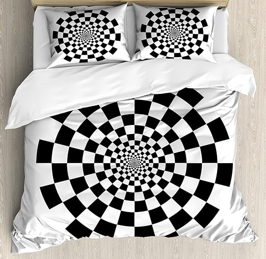 Amazon.com: Lunarable Geometric Duvet Cover Set, Monochrome Pattern Optical Illusion Checkerboard Design Concentric Illustration, Decorative 3 Piece Bedding Set with 2 Pillow Shams, Queen Size, Black White: Home & Kitchen