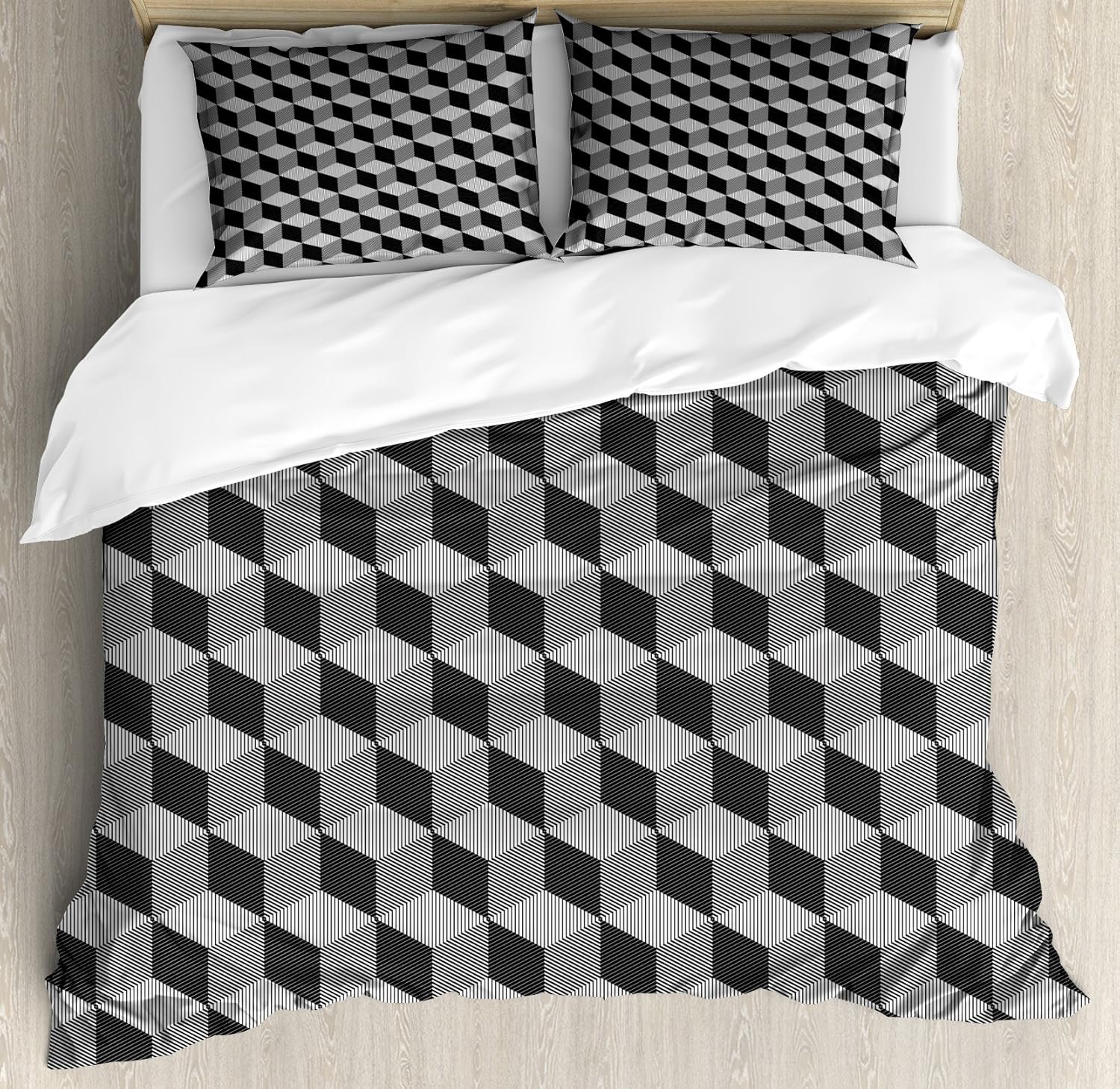 Amazon.com: Ambesonne Black and White Duvet Cover Set, Monochrome Cube Composition with Abstract 3D Design Optical Illusion, Decorative 3 Piece Bedding Set with 2 Pillow Shams, King Size, Black and White: Home