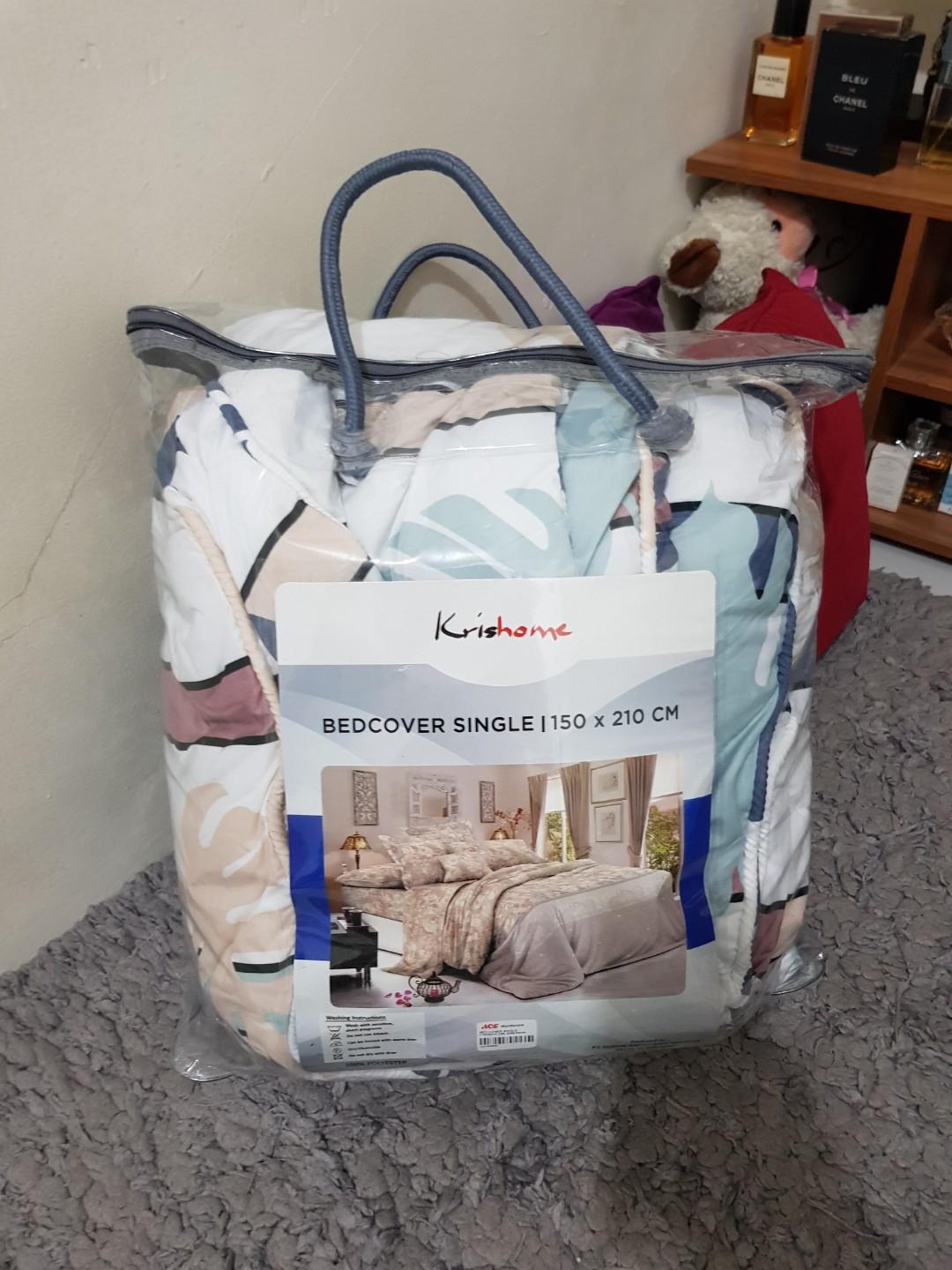 Bed Cover Only merk Krishome size Single 120x200 Baru, Perabotan Rumah di Carousell