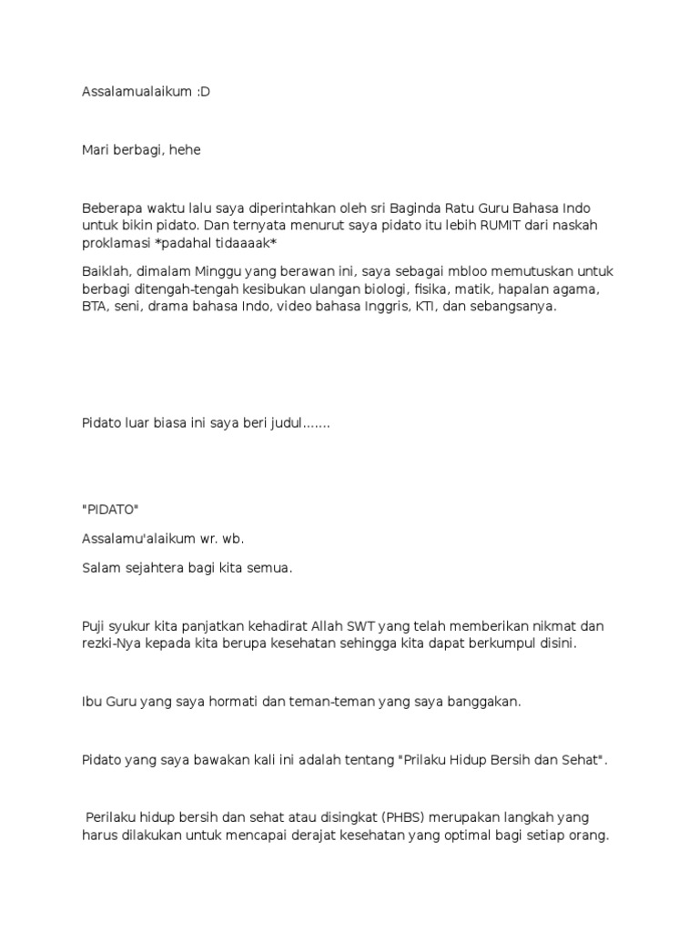 bikin pidato yang singkat,dan menggunakan bahasa indonesia yang baik - Brainly.co.id