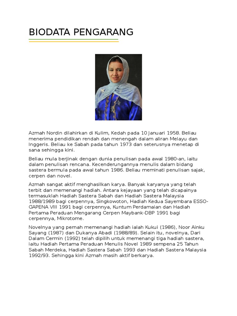 Contoh Biodata Penulis Cerpen.fakhai Md
