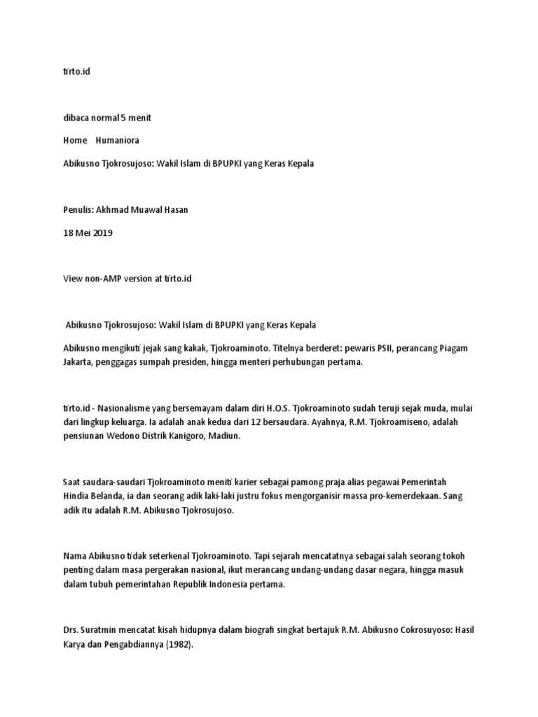 jelaskan riwayat hidup dari abikusno cokrosuyoso! - Brainly.co.id