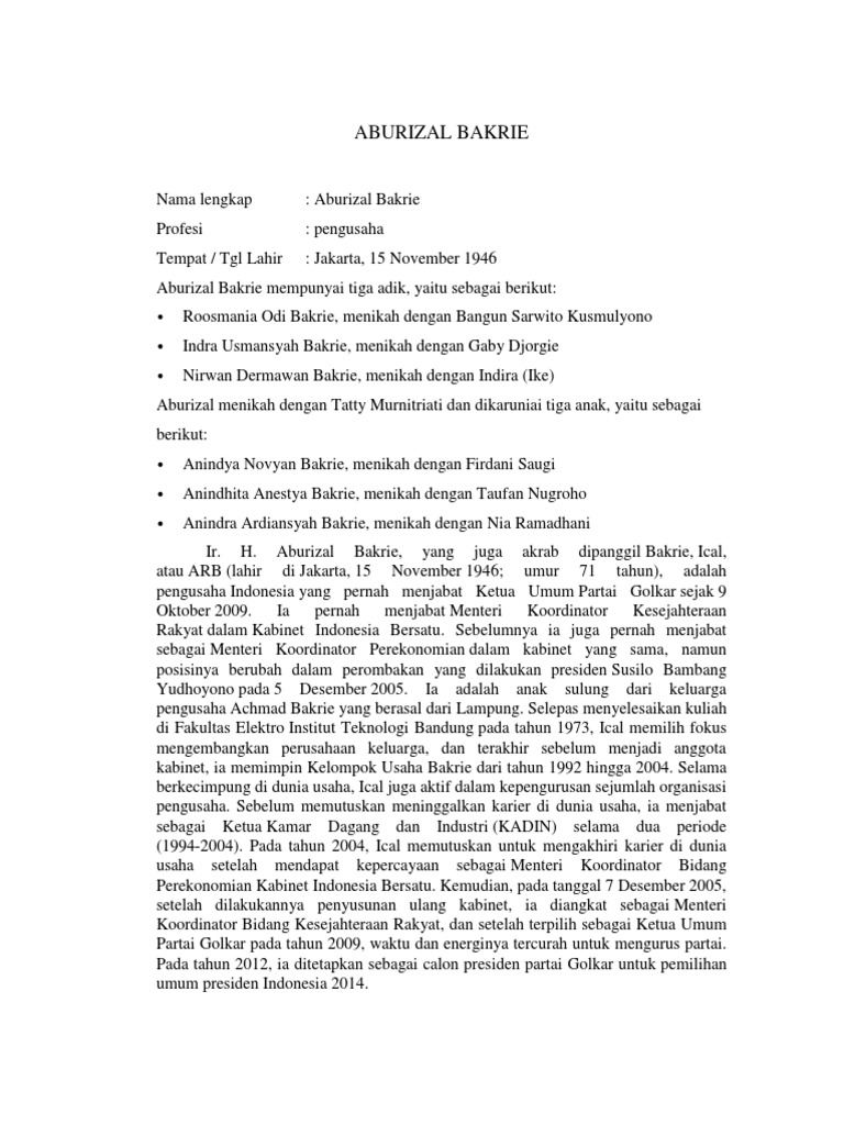 DOC) BIOGRAFI ABURIZAL BAKRIE | Shabir Zulmi - Academia.edu