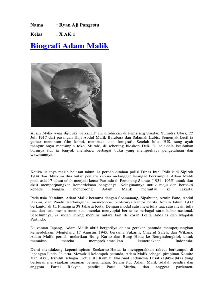 DOC) Biografi Adam Malik | nanda mahendraharahap - Academia.edu