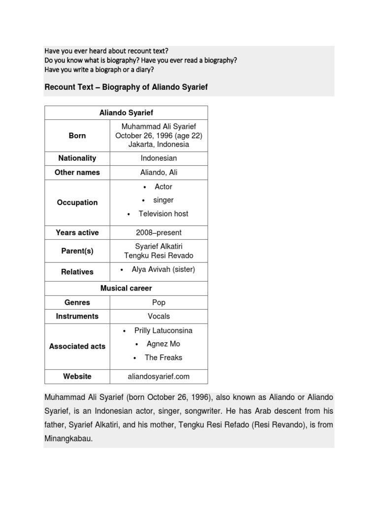 Recount Text Biography of Aliando Syarief | Indonesia | Indonesian People