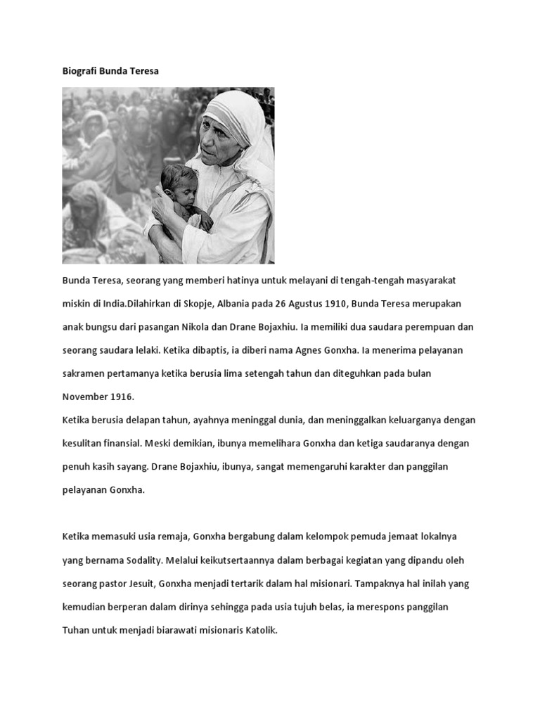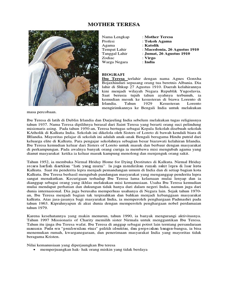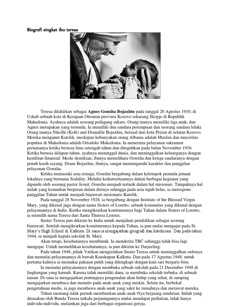 DOC) BIOGRAFI BUNDA TERESA | willy ndihi - Academia.edu