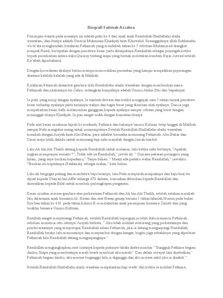 Biografi Fatimah Azzahra | ayudhita rifaayani - Academia.edu
