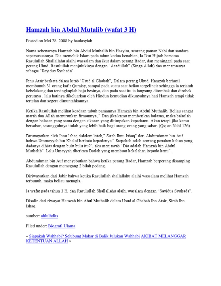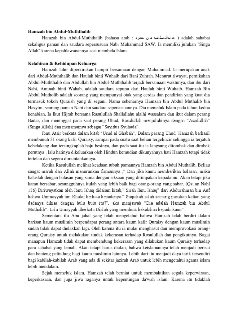 PDF) BIOGRAFI HAMZAH BIN ABDUL MUTHOLIB | zul arwan Lubis - Academia.edu