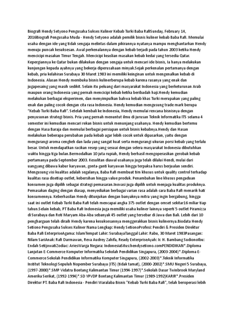 Biografi Hendy Setiono Pengusaha Pemilik Kebab Baba Rafi - Pengusaha