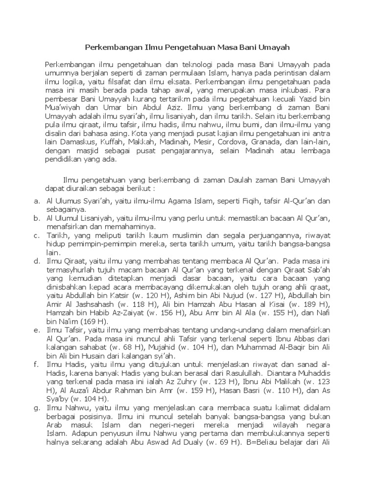 Makalah PERKEMBANGAN ILMU PENGETAHUAN PADA MASA BANI UMAYYAH - Tugas Sekolah