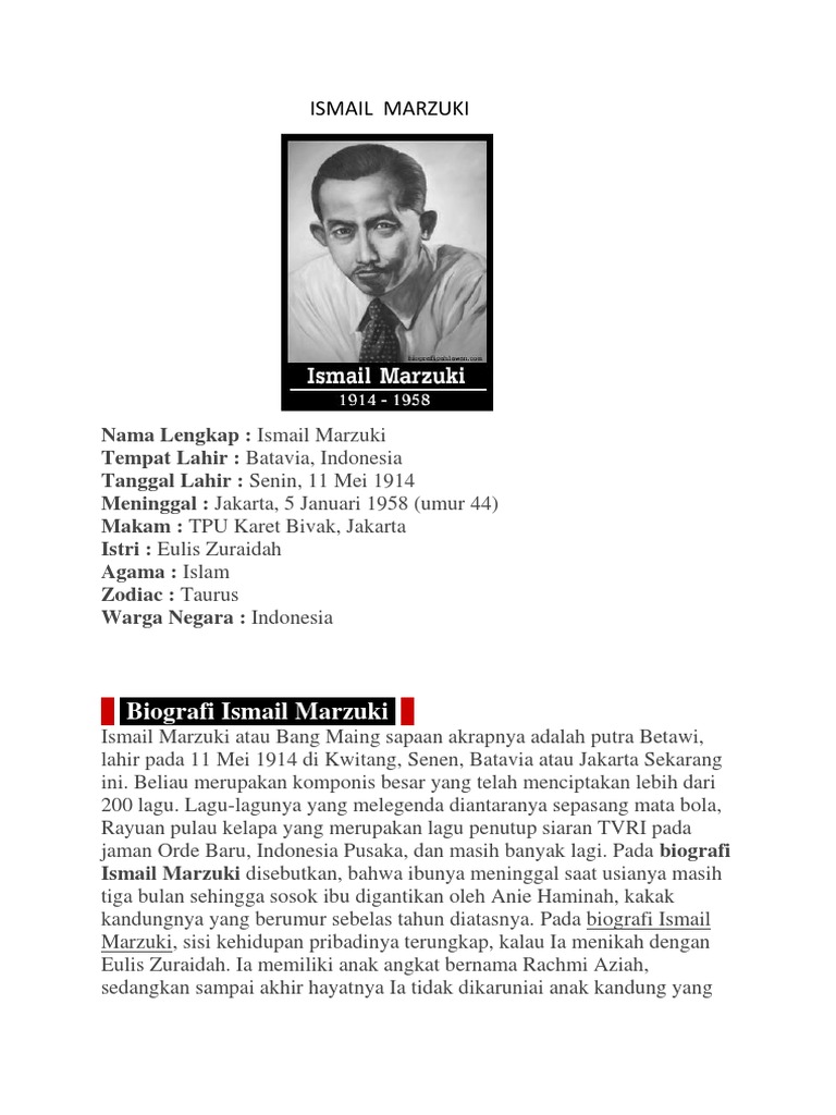 DOC) Biografi Singkat Ismail Marzuki | IDBINTANG.COM | Margaretta Aszhari - Academia.edu