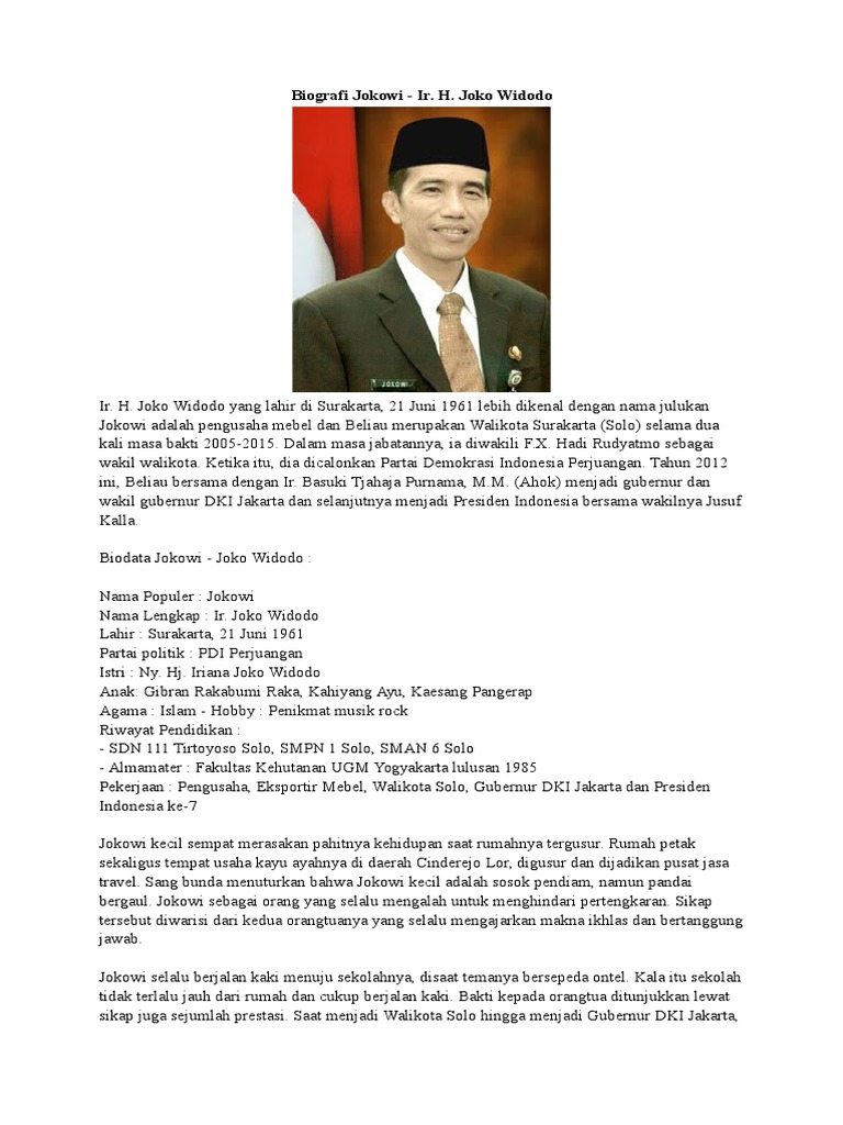 DOC) Biografi Jokowi -Ir. H. Joko Widodo | Kelas P-AA - Academia.edu