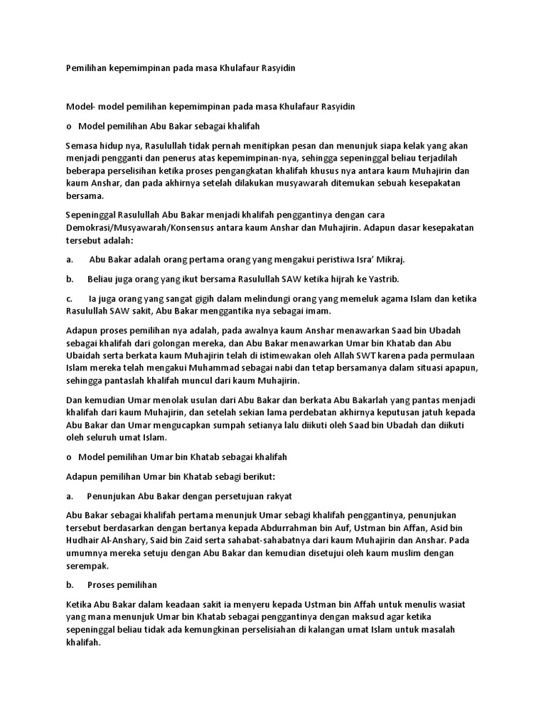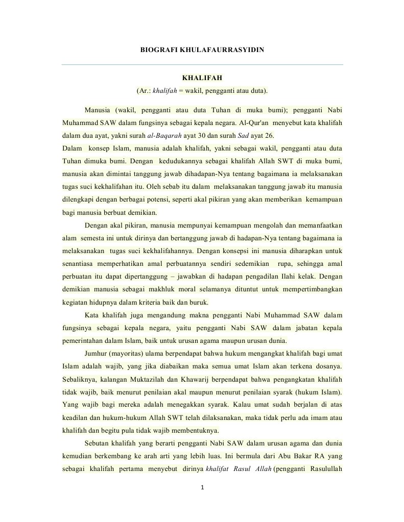 DOC) SEJARAH SINGKAT KHULAFAUR RASYIDIN | Muhammad Hasbi - Academia.edu