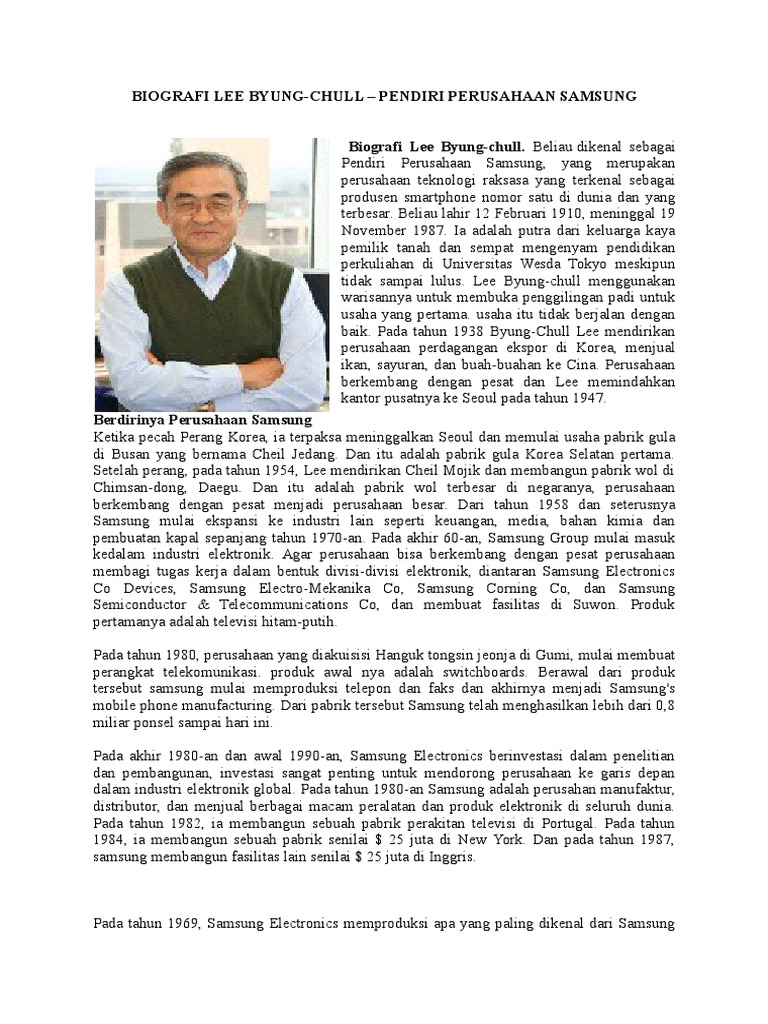 Biografi Lee Byung Chull, Pendiri Perusahaan Samsung Yang Mendunia | Biografiku.com