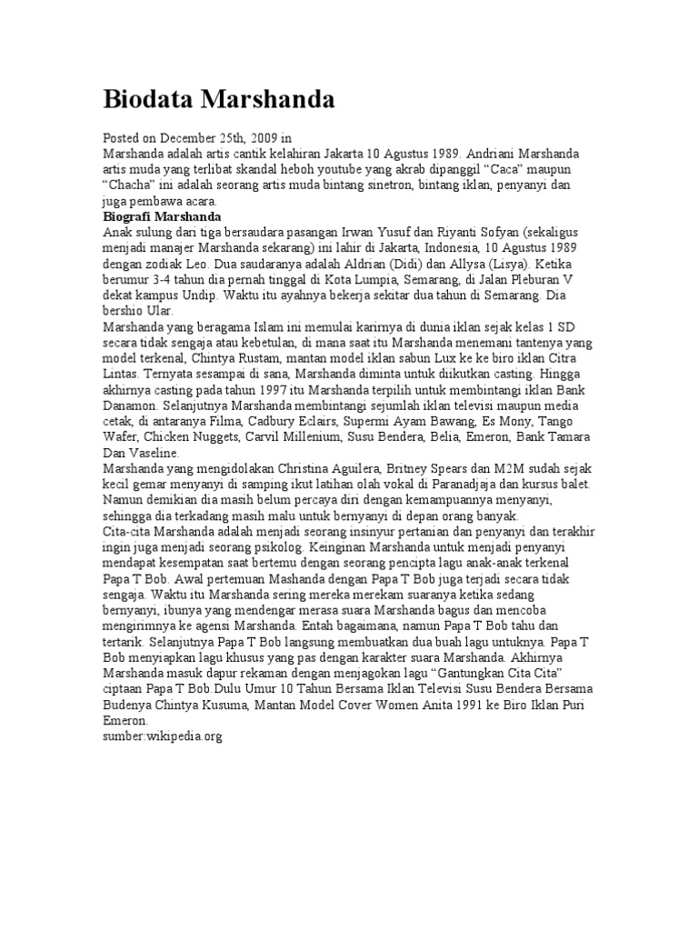 BIODATA DAN BIOGRAFI MARSHANDA - Biodata Artis