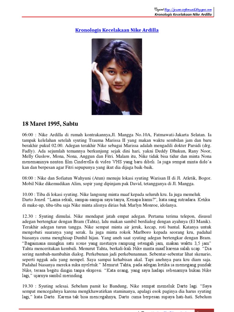 Kronologis Kecelakaan Nike Ardila