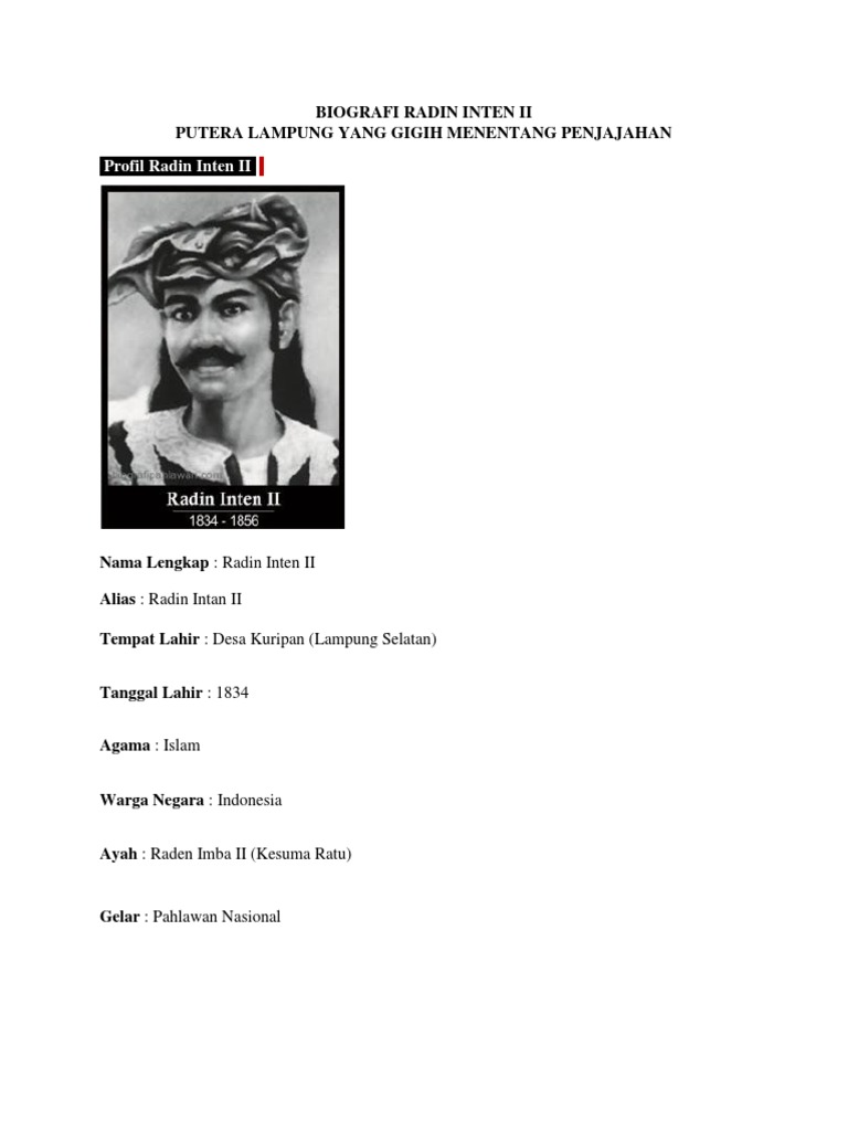 Tugas B.lampung pungo pandai biografi “pahlawan Raden intan II”. Agustinus Munthe ,XI IPA 1 - YouTube