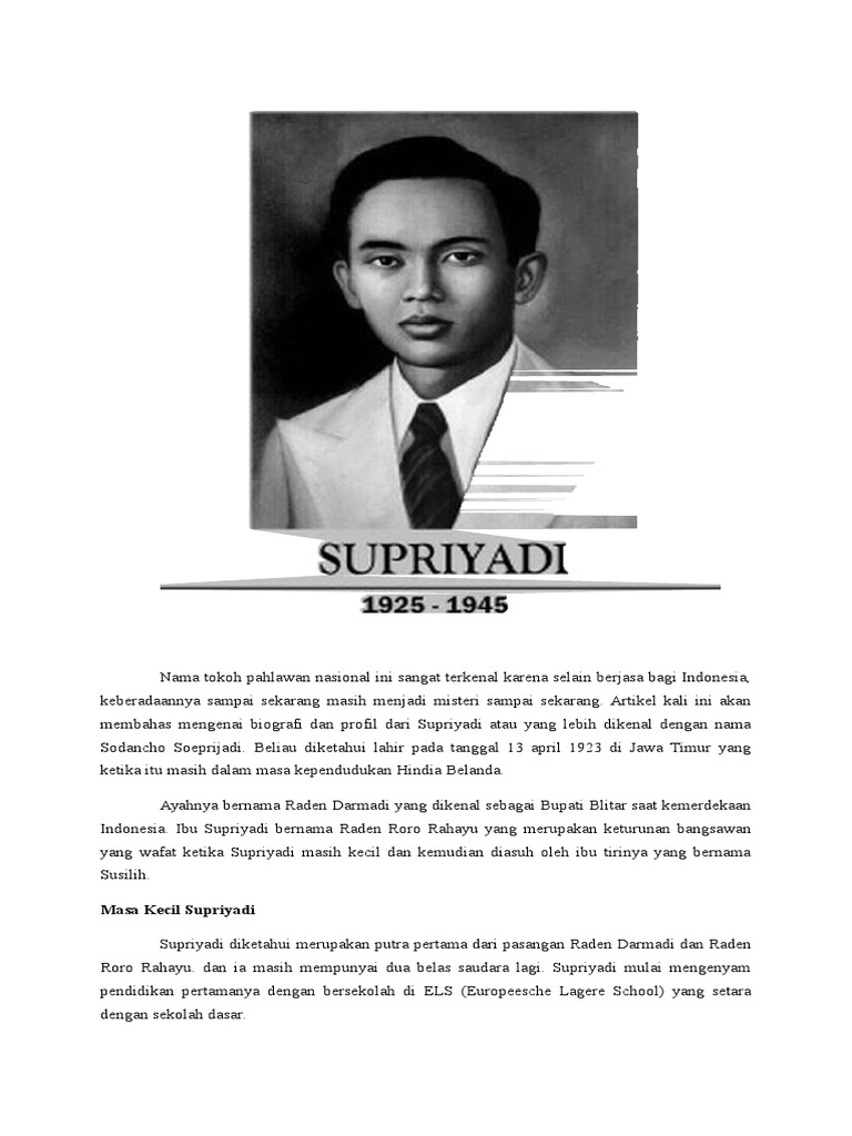 Biografi dan Profil Supriyadi - Pahlawan Nasional dari Blitar - Biografi.org
